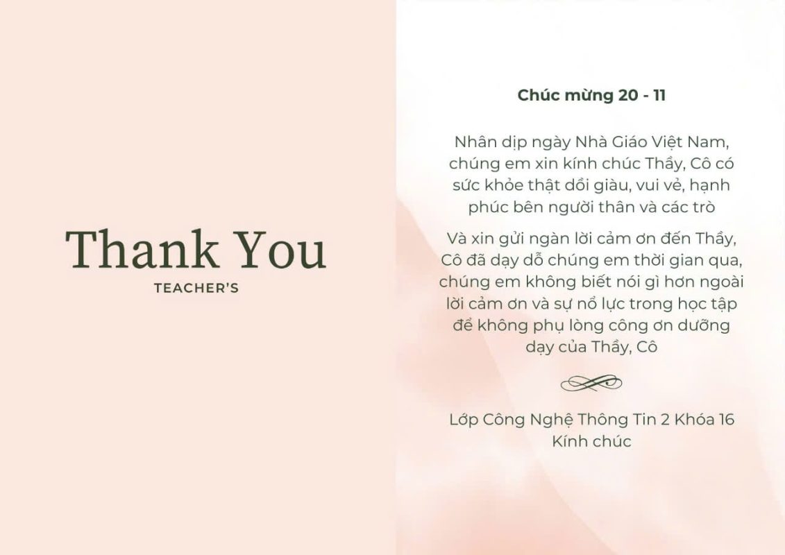 ♥️♥️♥️Các bạn sinh viên khoa Công nghệ thông tin đã thiết kế những tấm thiệp tươi thắm gửi đến quý thầy cô nhằm tri ân và cảm ơn thầy cô đã truyền lửa và truyền đạt những kiến thức cho chúng em trong sự nghiệp sau này. Thiết kế: sinh viên khoa CNTT