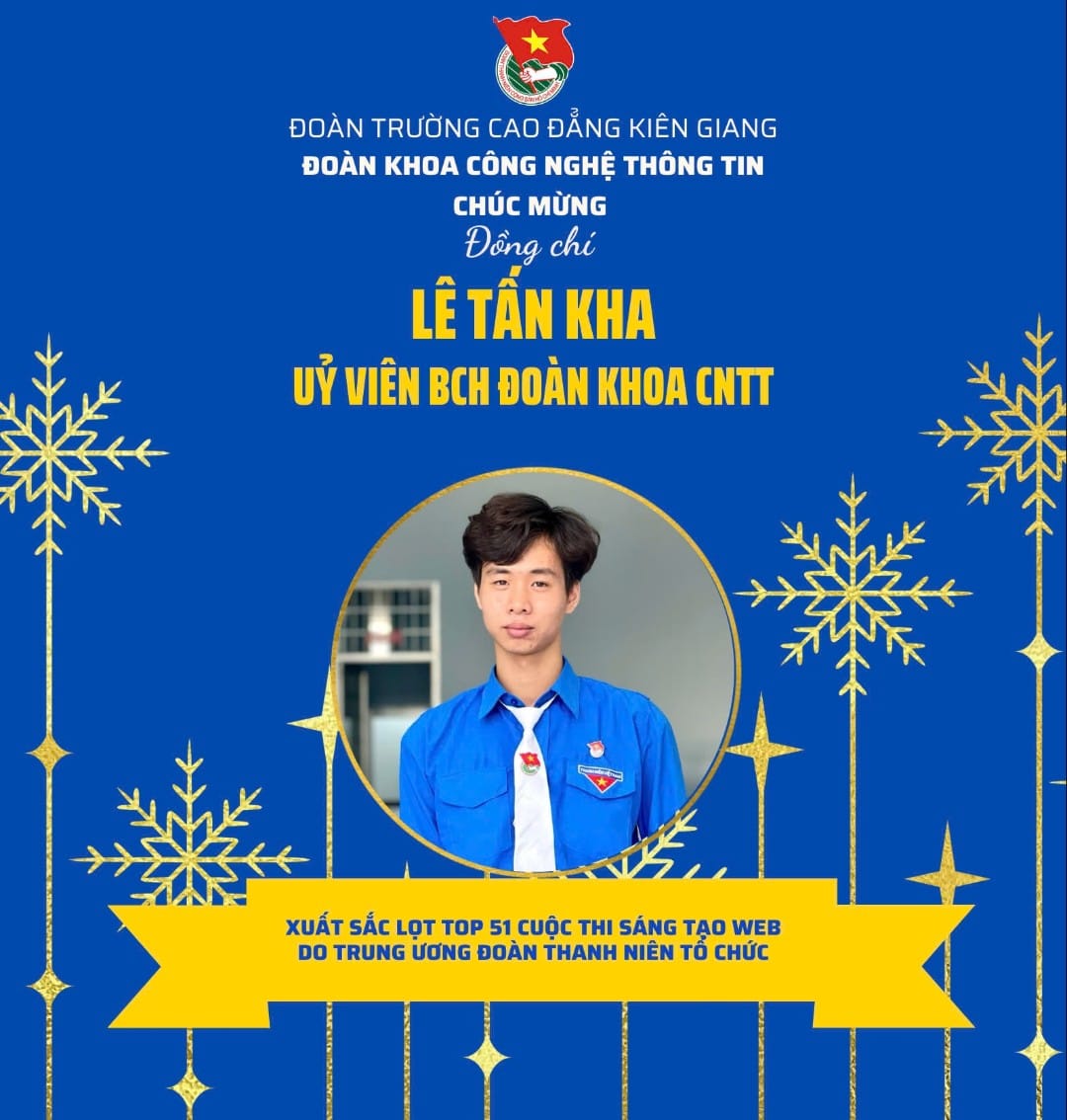 CHÚC MỪNG ĐỒNG CHÍ LÊ TẤN KHA – UV BCH ĐOÀN KHOA CNTT ĐÃ XUẤT SẮC LỌT TOP 51 CUỘC THI SÁNG TẠO WEB DO TRUNG ƯƠNG ĐOÀN TỔ CHỨC.